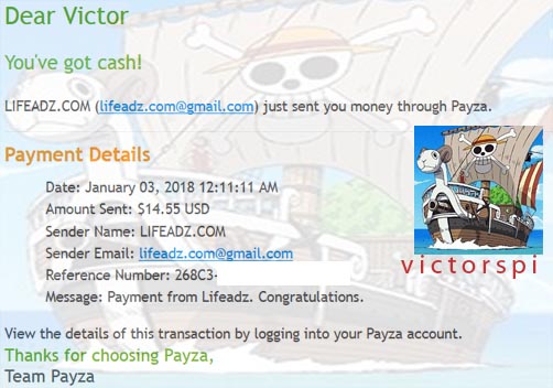 ![]() Segundo pago recibido de lifeadz: $ 14.55 USD por Payza | |||